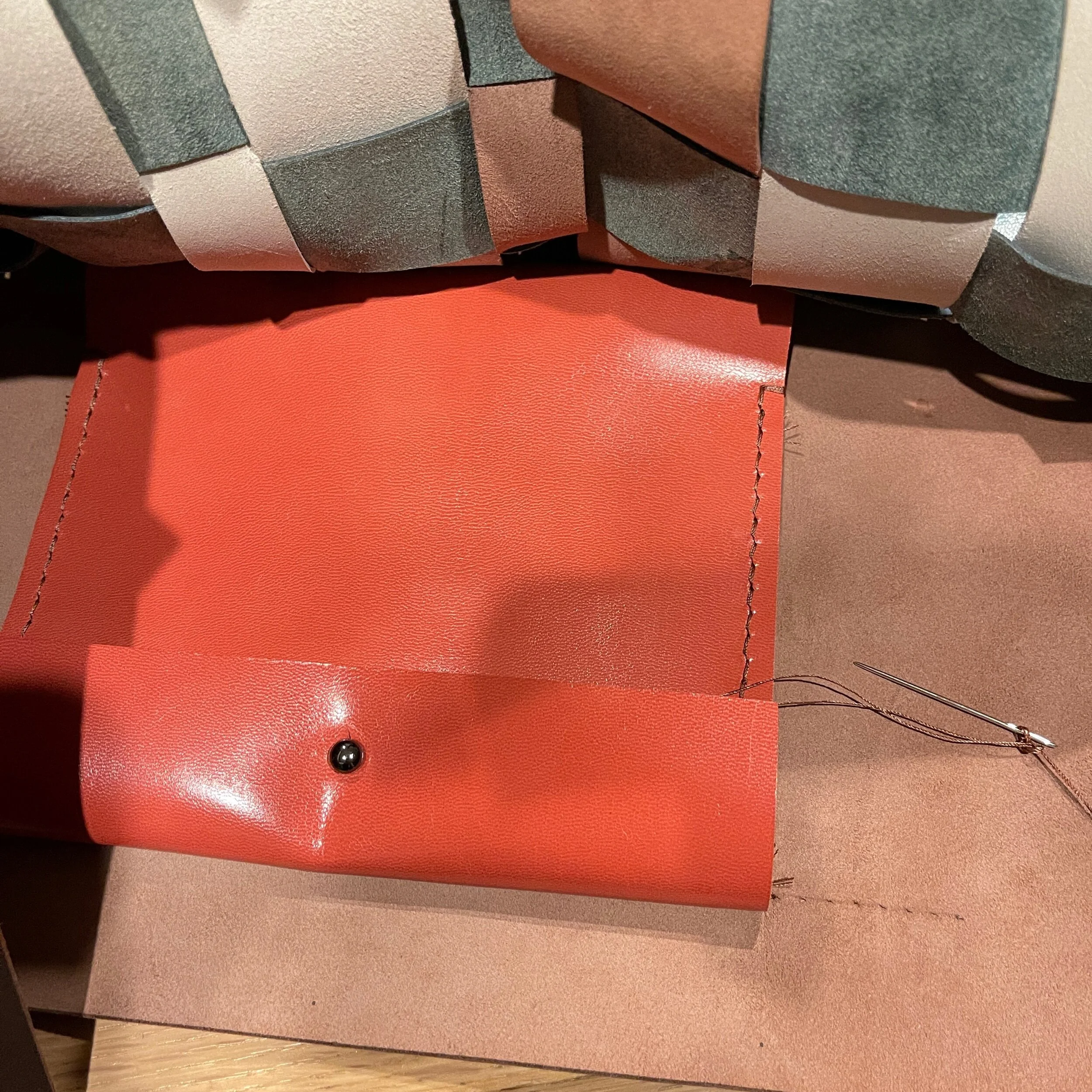 可能是很多年前,在lapco,店面在mt eden,买了好几张清仓货的nappa,nappa是小公牛皮,薄,质地柔软,表面光滑,早期会屯觉得好看的皮料,但是后来慢慢更喜欢植鞣革的特性。