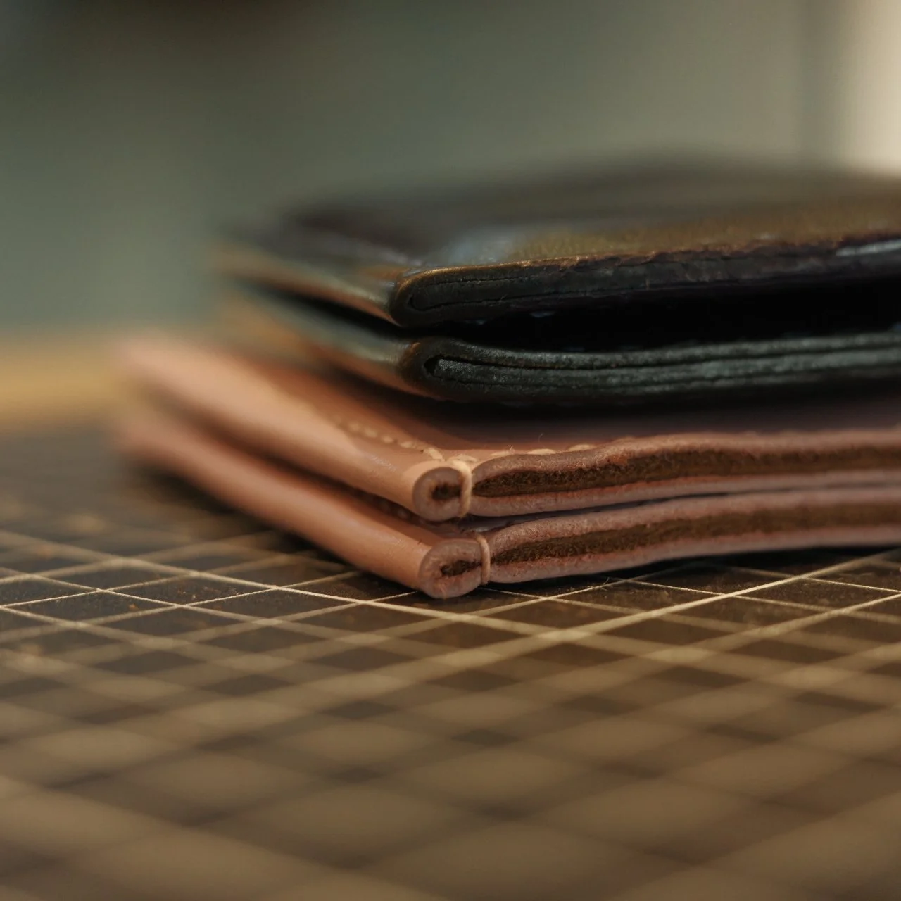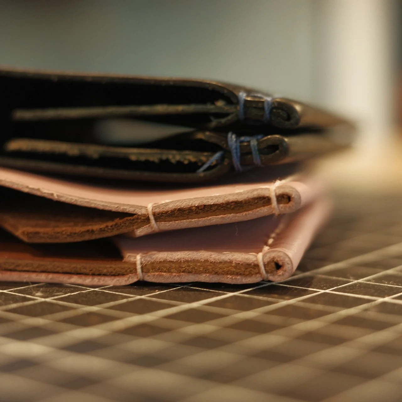 不知不觉旧卡包已经有6个年头了,自己染的植鞣革已经轻微的掉色,缝线尾端也快散开了。