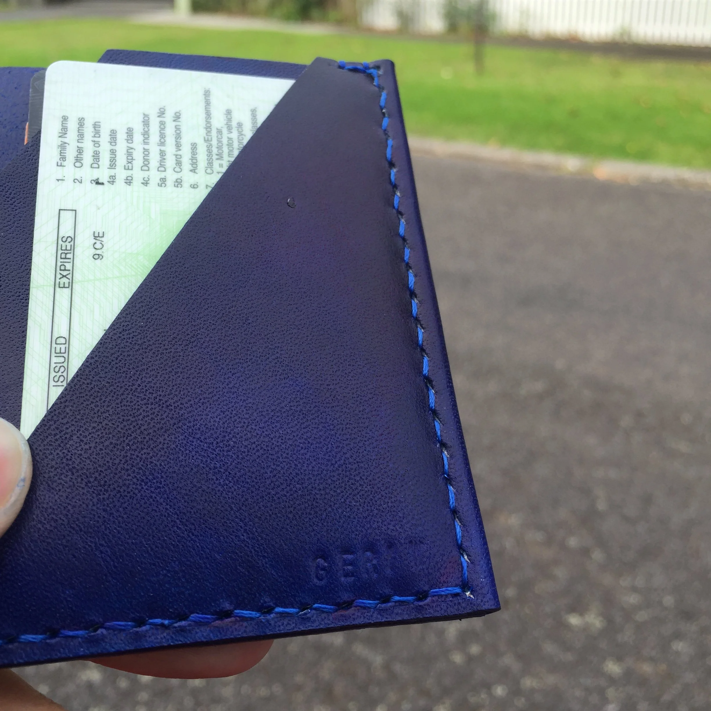 自以为聪明的把缝线增加以后,卡塞进去的空隙变小了,不容易掉出来,但是导致必须得舍去几张卡。总长比原本的小了一点导致现金折叠完有凸起……这两个问题。