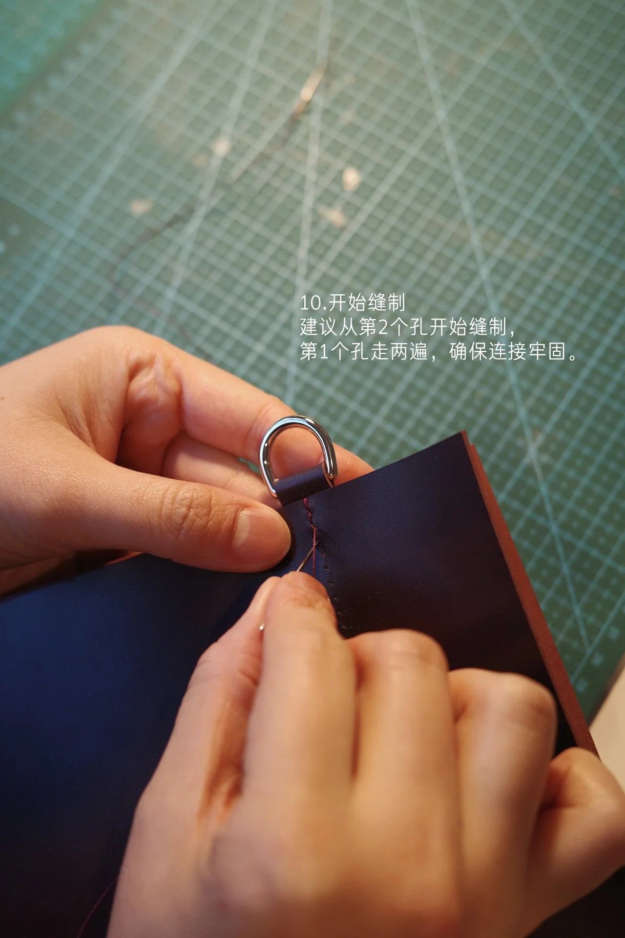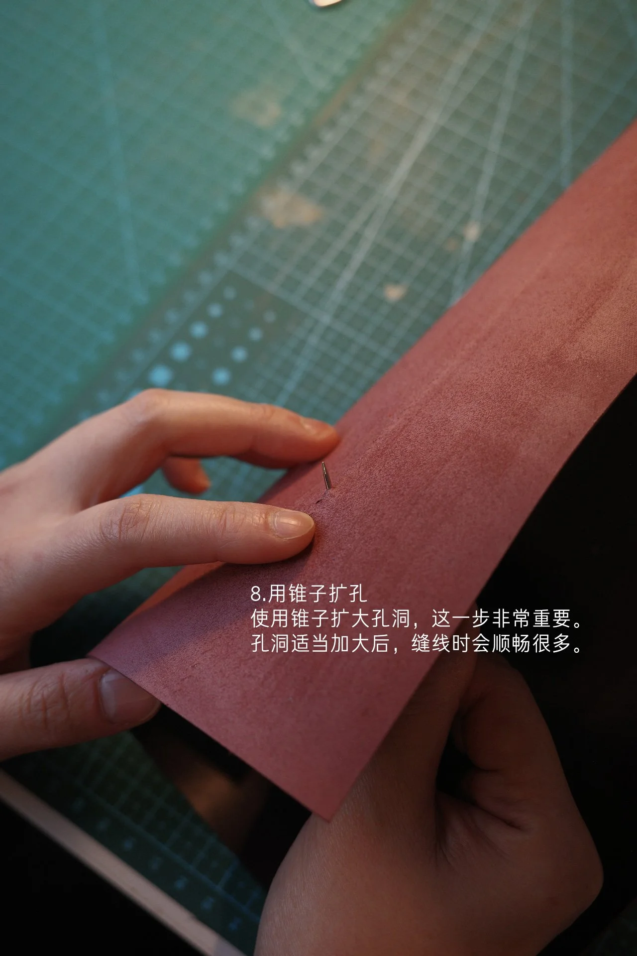 Use an awl to enlarge the holes slightly. This step is essential for smooth stitching.