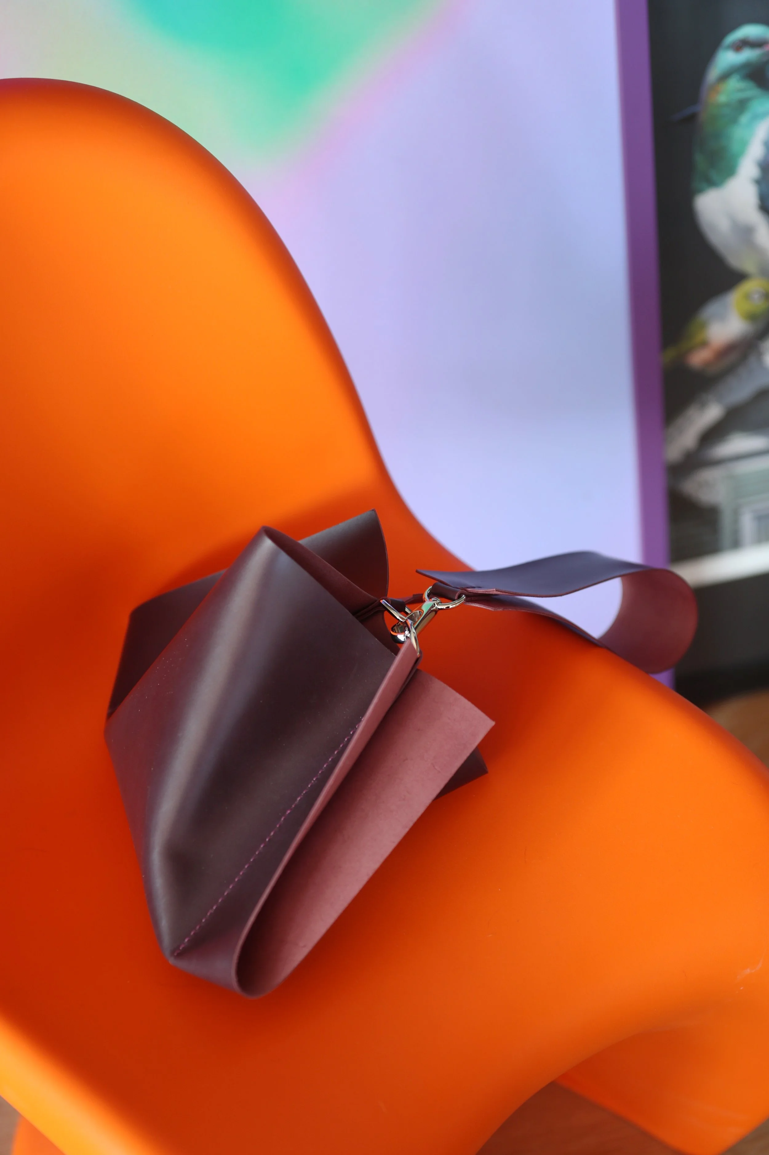 The triangle, compared to a square, fee more courage in space. Possibly, it reflects my inner desire to stand out. But this inspiration didn’t come out of nowhere. Back in 2011, a brand called Building Block showed us that bags could have a sculptural presence. Later, I designed a perfectly triangular handbag. Since then, the triangle has often appeared in my leatherwork.