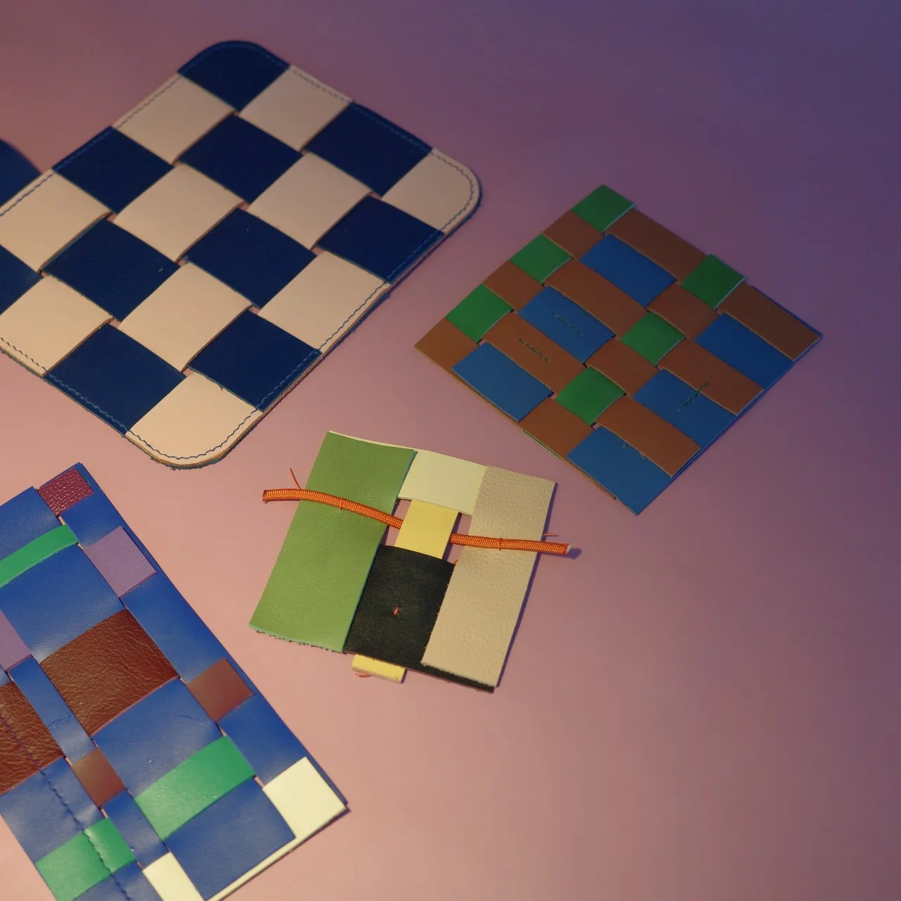 面对皮料,我暂且是了解它的,我沉迷于它的色彩,柔软,稳定和温度,基于皮料的特性,加上对平日生活使用的场景理解,才一直有灵感并且持续输出。也因为工作中无形的训练,对于空间中的大小,比例,形状,尺度,色彩,图案,视觉传达都有一定的把握,才最终得以集中在这一个小小的编织上。