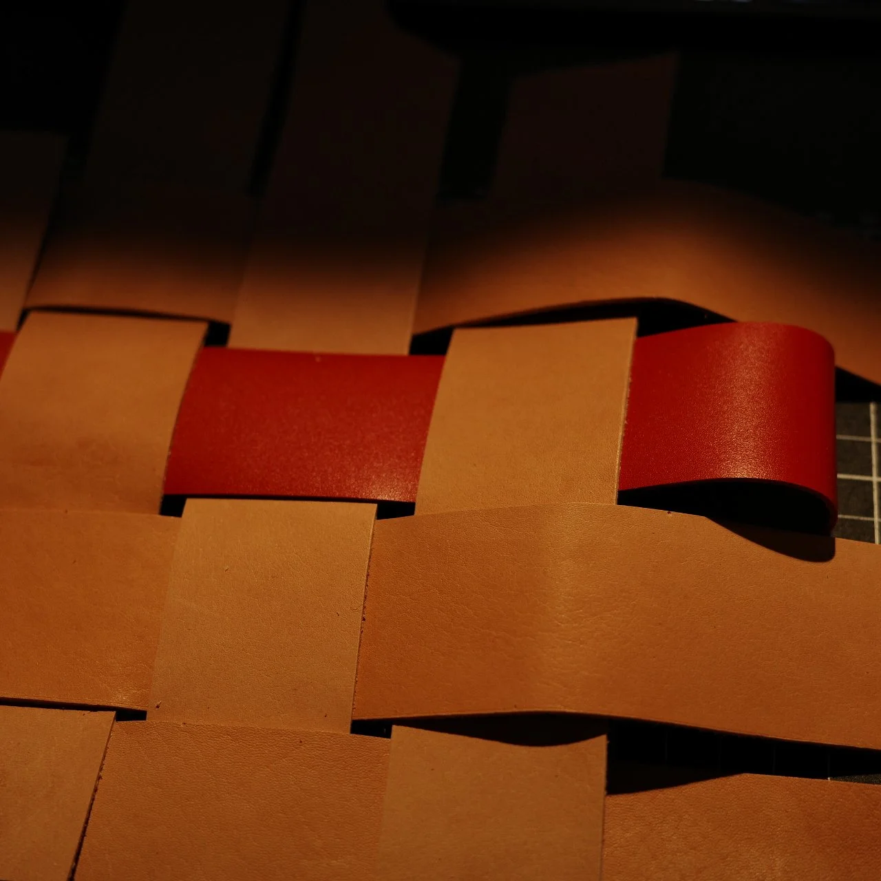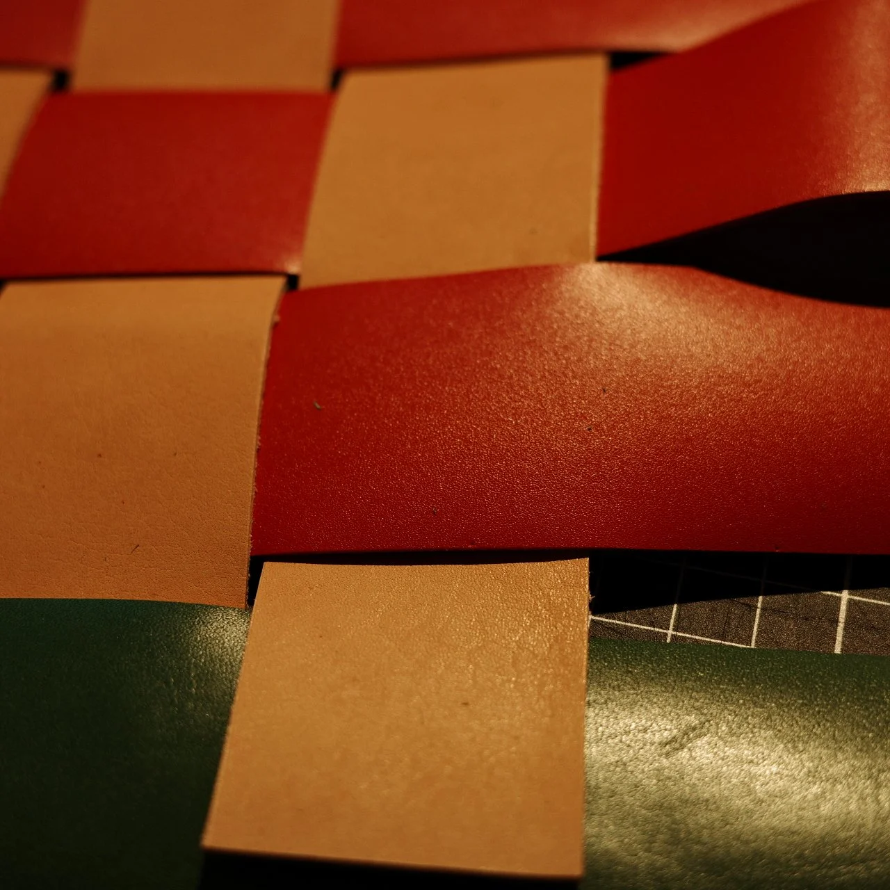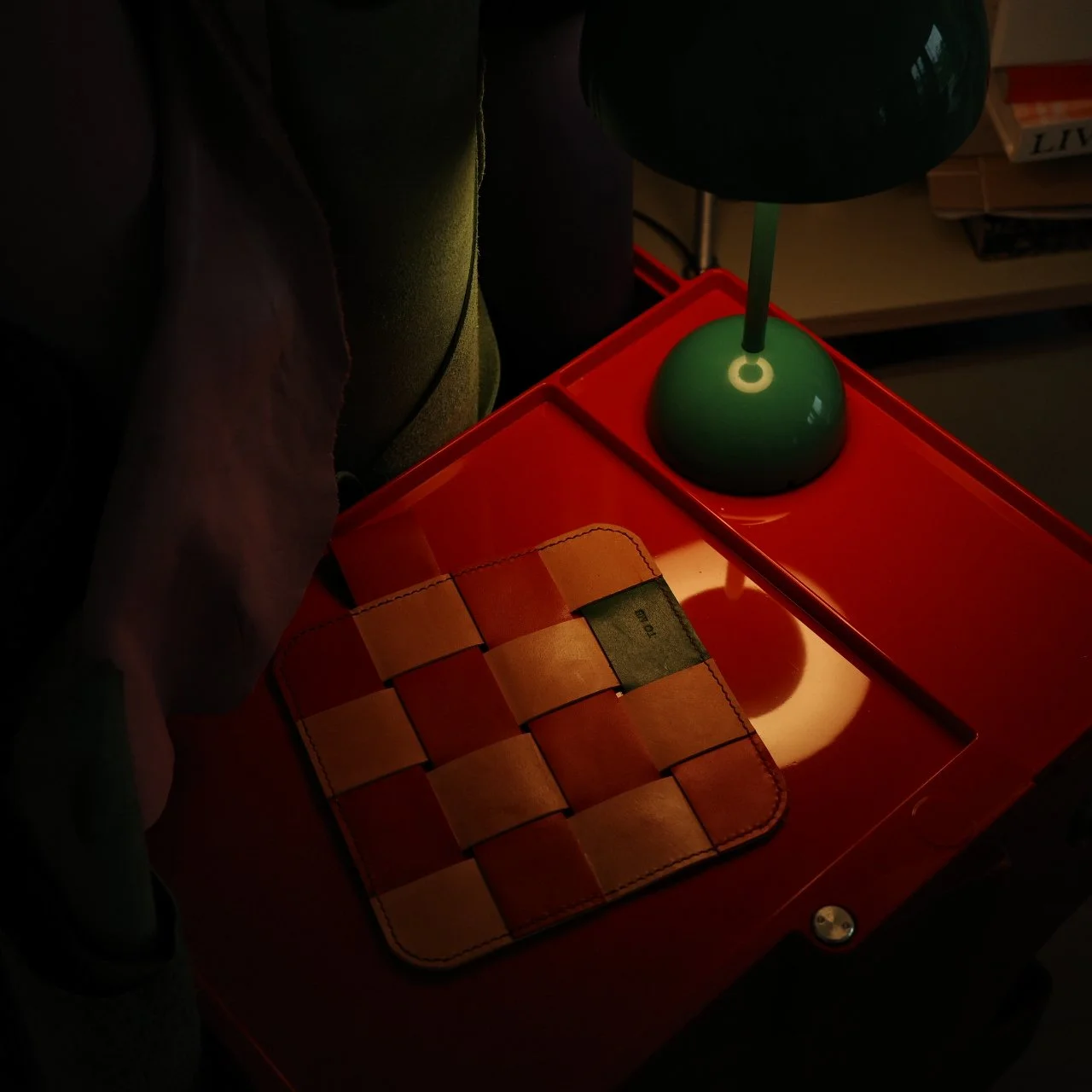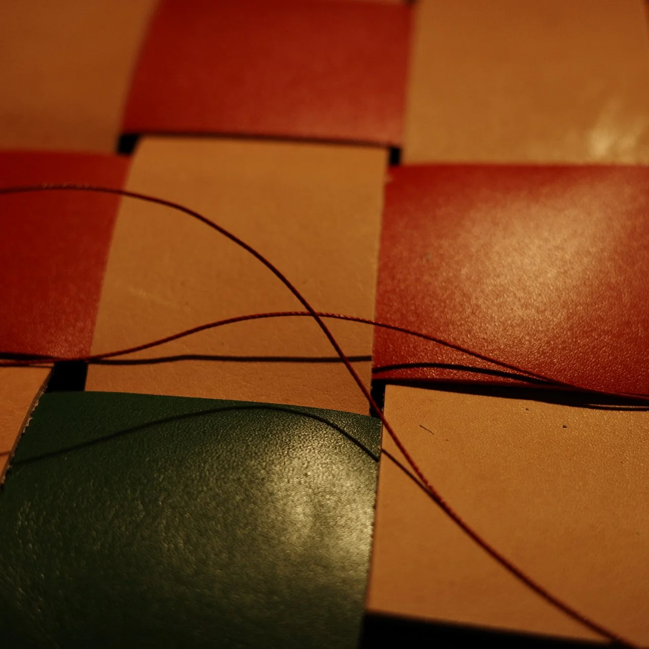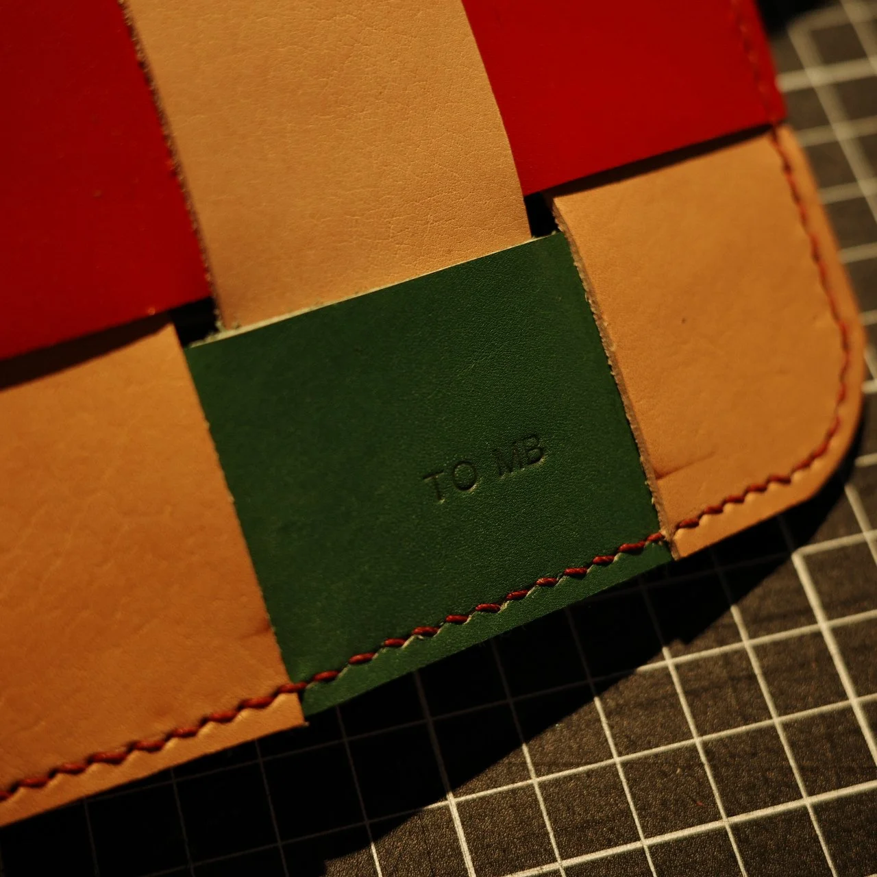 一开始只想做经典的两个颜色的配色,植鞣革的浅棕色和圣诞红,但是多加了一个点缀的绿色,更加有节日气氛,这是特别定制款!