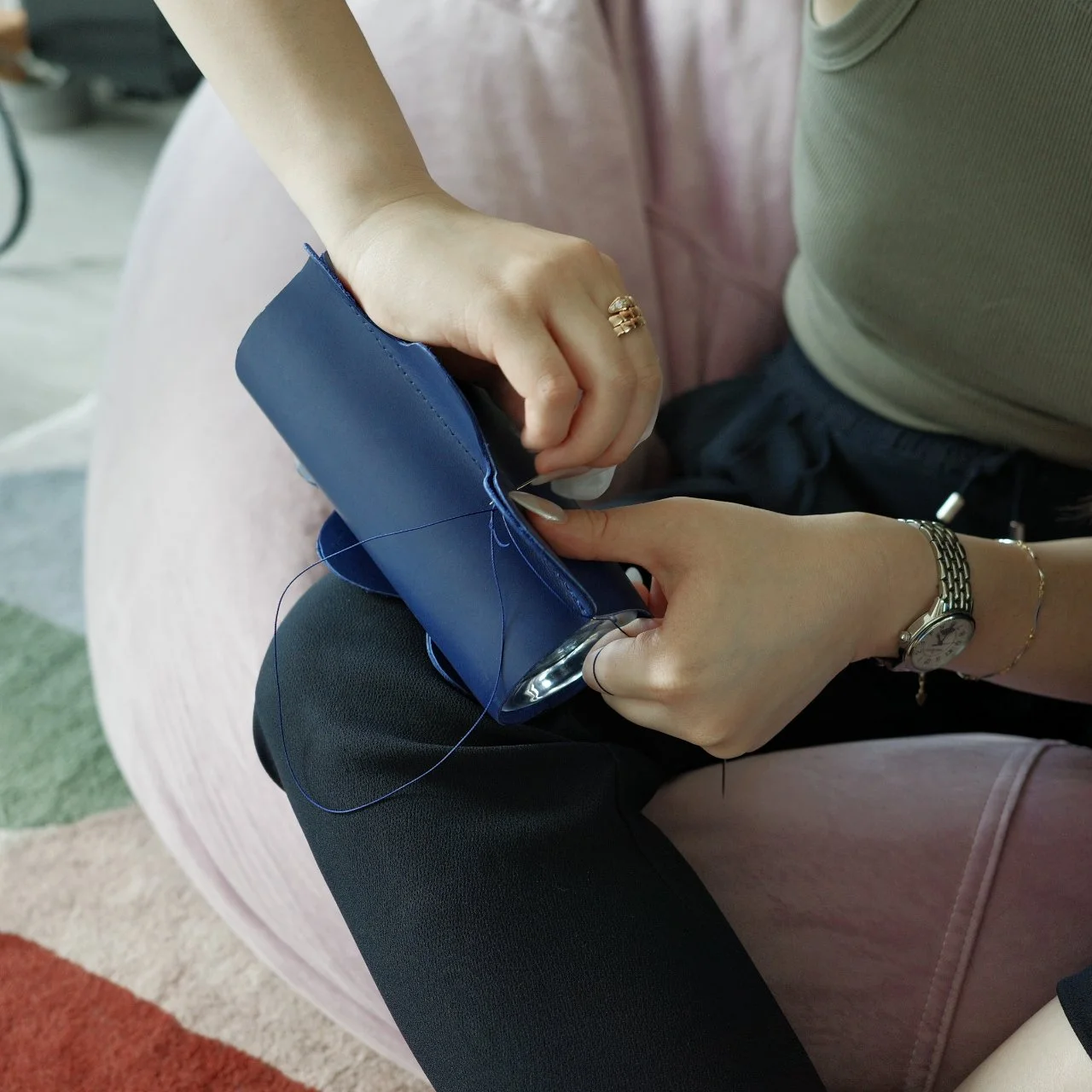 12.皮包住玻璃杯缝制另外一侧缝线。